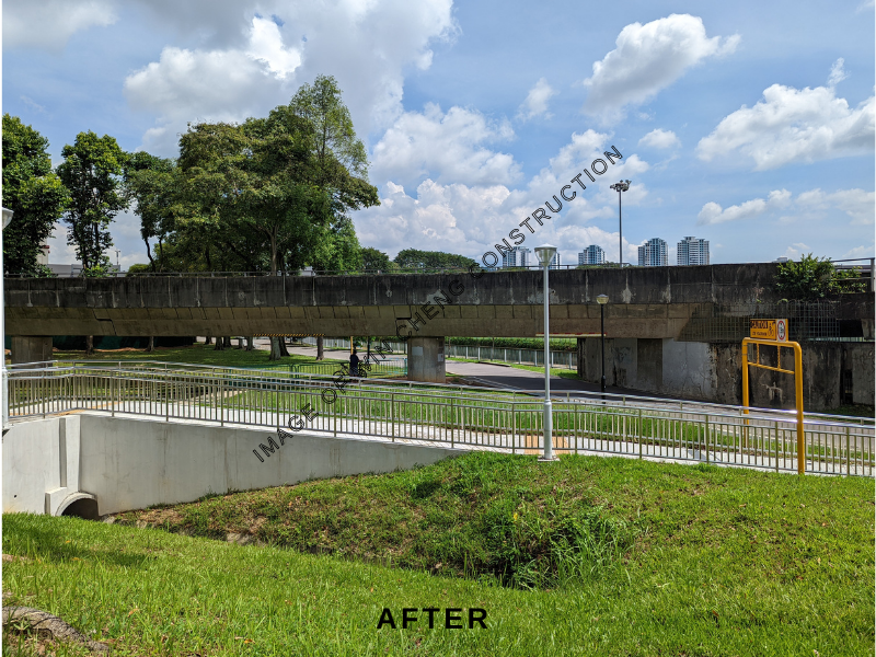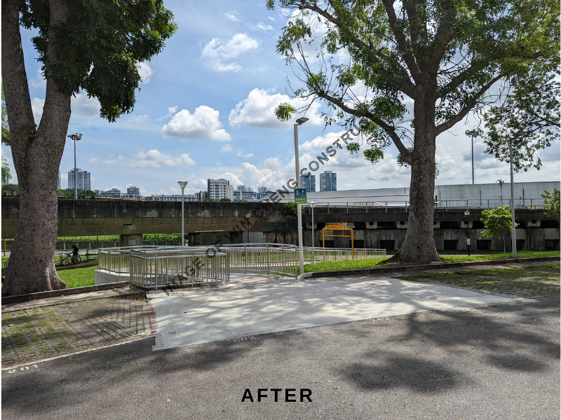 New barrier free access ramp to improve connectivity from Kallang Park Connector to Bishan Sports Hub, including railings, street lightings, signages and reconfiguration of existing car park lots